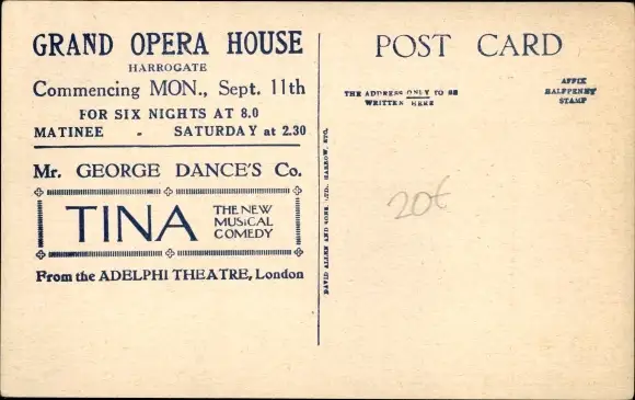 Ak Tina, Musical Comedy from the Adelphi Theatre London, Grand Opera House Harrogate, George Dance