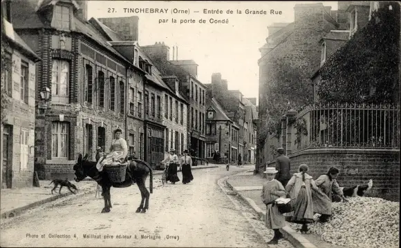 Ak Tinchebray Orne, Entree de la Grande Rue par la porte de Condé