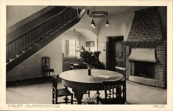 Ak Tinglev Tingleff Dänemark, Innenansicht der Tingleff Volkshochschule, große Tischrunde, Stü...