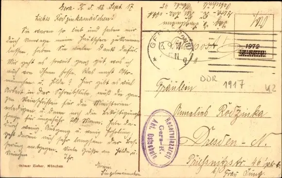 Zustand, siehe Scan, gelaufen, 1917 - ca 14 cm X 9 cm