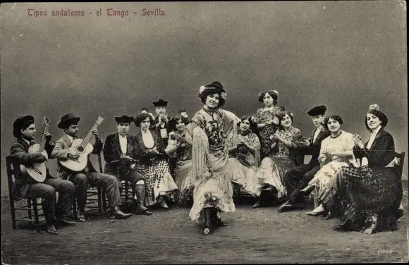 Ak Tipos andaluces, el Tango, Sevilla, spanische Trachten