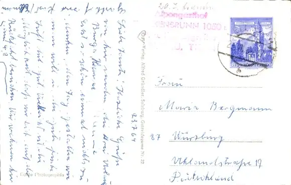 Zustand, siehe Scan, gelaufen, 1964 - ca 14 cm X 9 cm