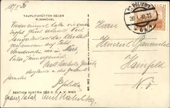 Zustand, siehe Scan, gelaufen, 1930 - ca 14 cm X 9 cm