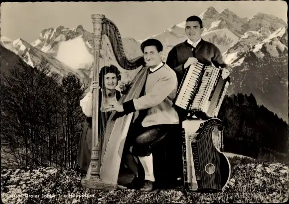 Ak Tiroler Jodler Trio Höpperger, Musiker in Trachten, Harfe, Akkordeon, Zither