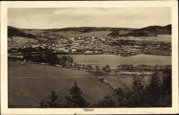 Ak Tisnov Südmähren, Totalansicht der Ortschaft mit Umgebung