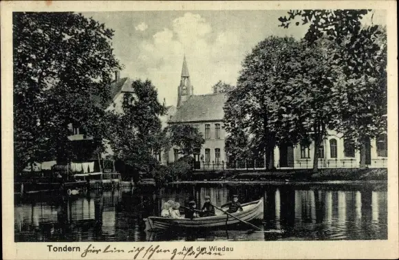 Ak Tønder Tondern Dänemark, Auf der Wiedau, Ruderboot