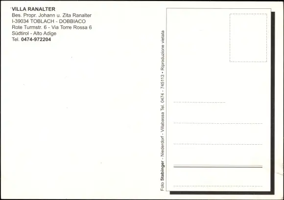 Ak Toblach Dobbiaco Südtirol, Villa Ranalter