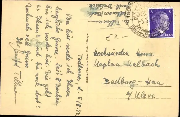 Zustand, siehe Scan, gelaufen, 1943 - ca 14 cm X 9 cm