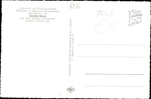 Ak Todtnau im Südschwarzwald, Gasthof Bären, Inh. Otto Köbele