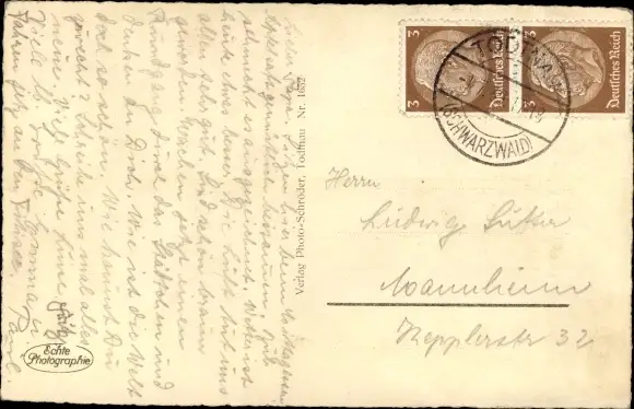 gelaufen 1939, Kanten bestoßen, Knickspur links, sonst guter Zustand