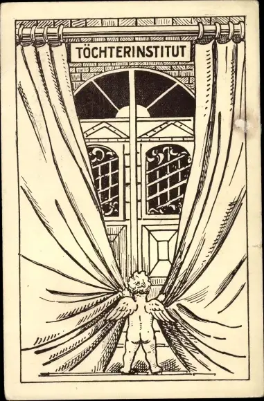 Ak Töchterinstitut, Engel hinter einem Vorhang