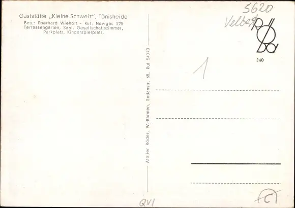 Ak Tönisheide Neviges Velbert Nordrhein Westfalen, Gaststätte Kleine Schweiz