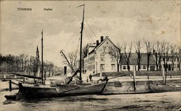 Ak Tönning an der Eider Nordfriesland, Hafen, Schiff