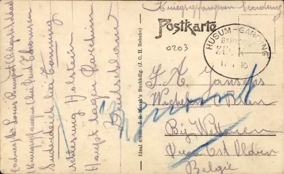 Zustand, siehe Scan, gelaufen- Bahnpoststempel Husum - Garding - ca 14 cm X 9 cm