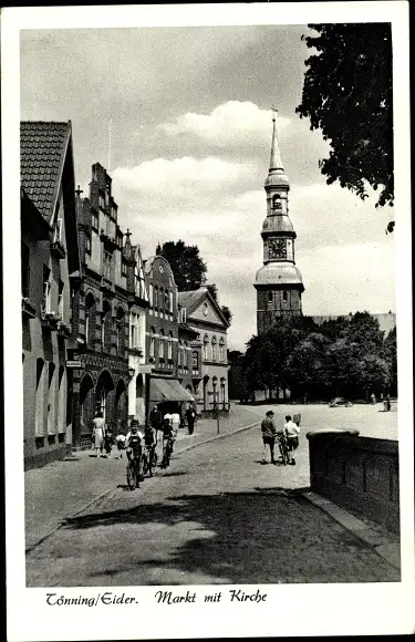 Ak Tönning an der Eider Nordfriesland, Markt mit Kirche