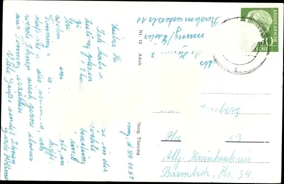 Zustand, siehe Scan, gelaufen, 1957 - ca 9 cm X 14 cm