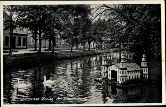 Ak Tönning an der Eider Nordfriesland, Schwanenteich