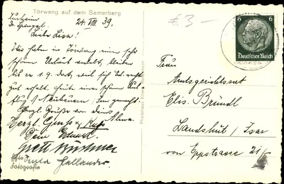 Zustand, siehe Scan, gelaufen, 1939 - ca 14 cm X 9 cm