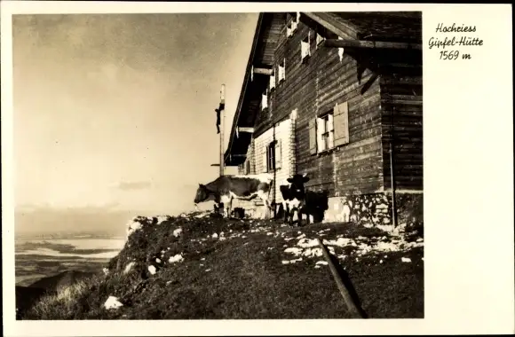 Ak Törwang Samerberg in Oberbayern, Hochries Gipfel Hütte, Kühe