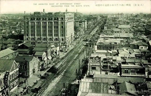 Ak Tokio Präf. Tokio Japan, Animated sight of Nipponbashi street