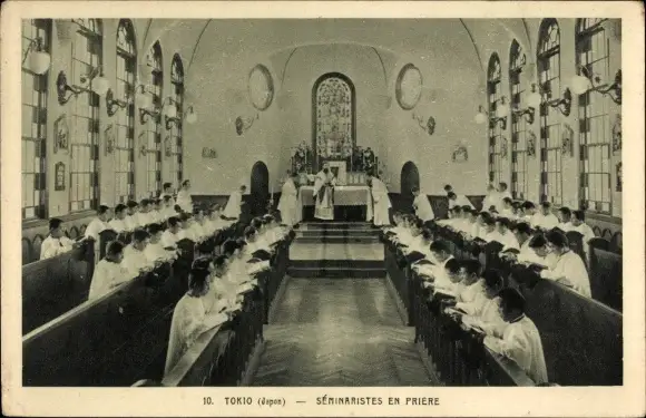 Ak Tokio Präf. Tokio Japan, Seminaristen im Gebet