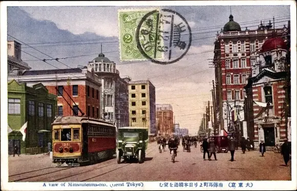 Ak Tokio Tokio Japan, Straßenpartie, Verkehr, Straßenbahn