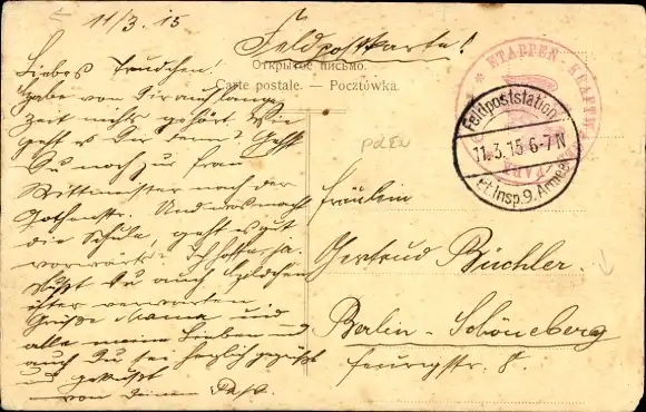 Zustand, siehe Scan, gelaufen, 1915 - ca 15 cm X 9 cm