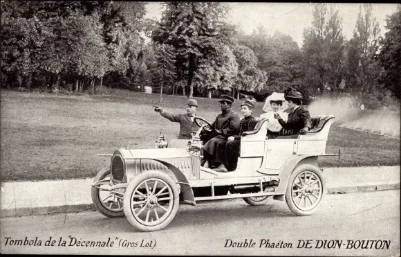 Ak Tombola de la Decennale, Double Phaeton von Dion Bouton, Automobil, Fahrer