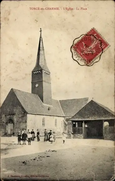 Ak Torce en Charnie Sarthe, Kirche, Platz
