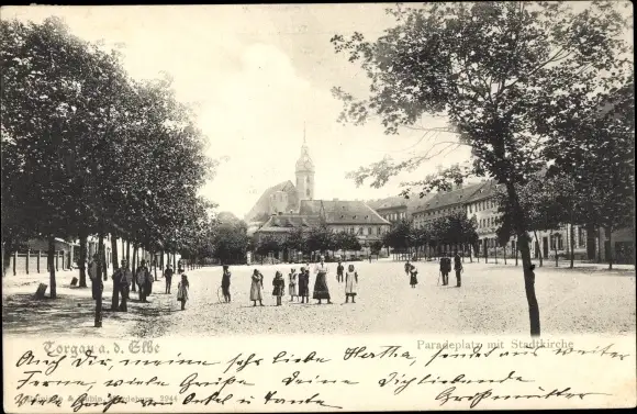 Ak Torgau an der Elbe, Paradeplatz, Stadtkirche
