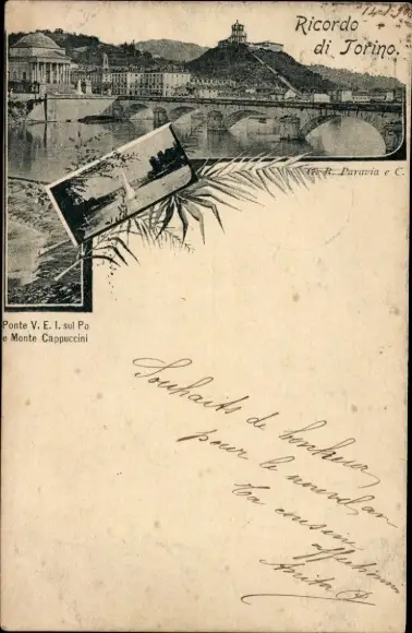Ak Torino Turin Piemonte, Brücke Vittorio Emanuele l, Po, Monte Cappuccini