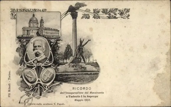 Ak Torino Turin Piemonte, Ricordo dell'inaugurazione del Monumento a Umberto I Superga