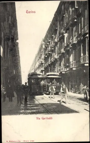 Ak Torino Turin Piemonte, Via Garibaldi, Straßenbahnen