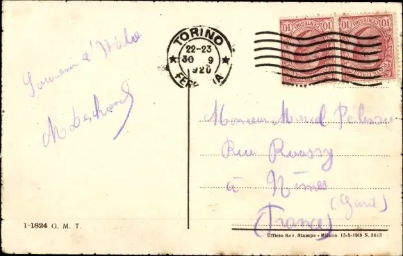 Zustand, siehe Scan, gelaufen, 1920 - ca 14 cm X 9 cm