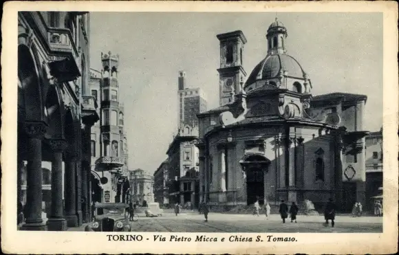 Ak Torino Turin Piemonte, Via Pietro Micca e Chiesa S. Tomaso
