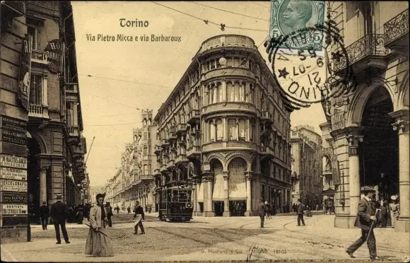 Ak Torino Turin Piemonte, Via Pietro Micca e via Giuseppe Barbaroux, Straßenbahn