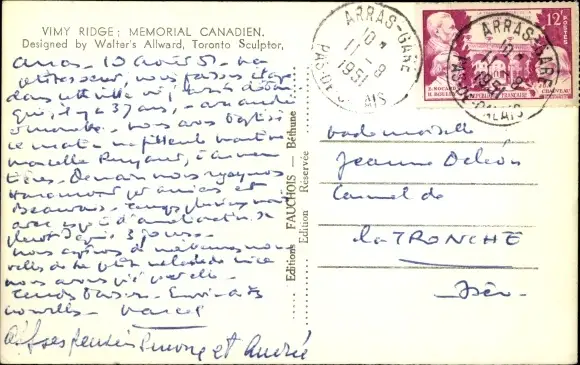 Ak Toronto Ontario Kanada, Vimy Ridge, Memorial Canadien