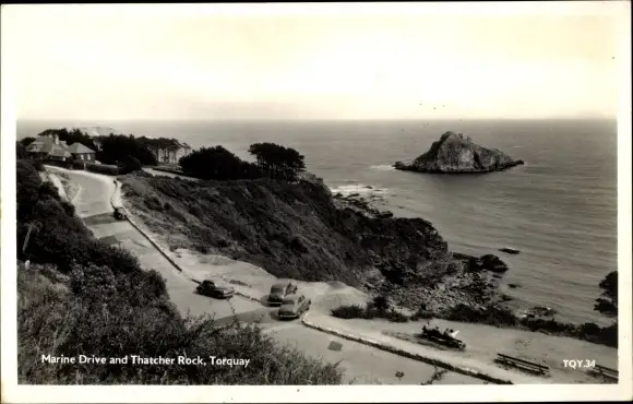 Ak Torquay Devon England, Marine Drive and Thatcher Rock