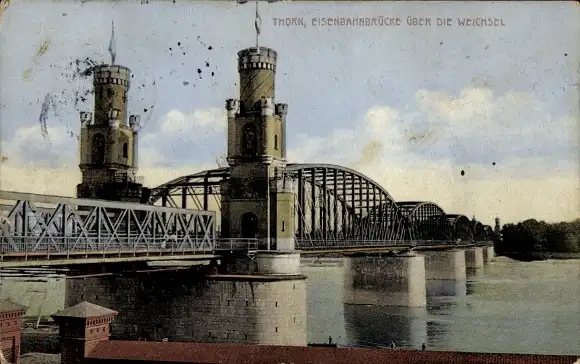 Ak Toruń Thorn Westpreußen, Eisenbahnbrücke über die Weichsel