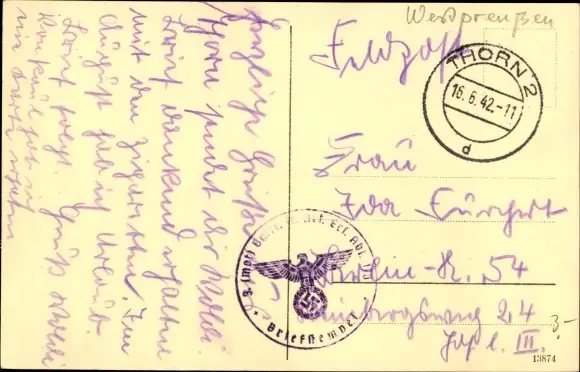 Zustand, siehe Scan, gelaufen, 1942 - ca 9 cm X 14 cm