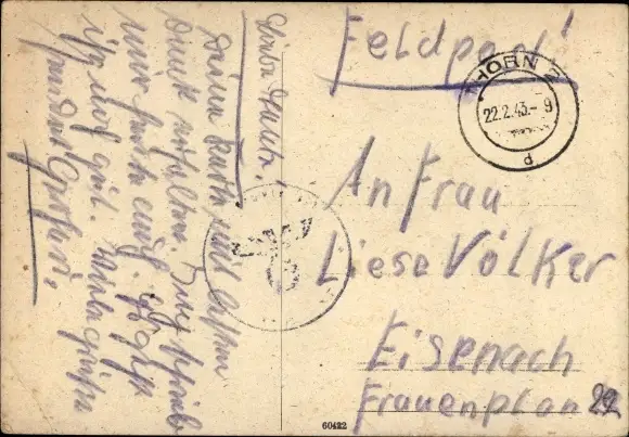 gelaufen 1943, Eckknicke, leicht fleckig, sonst guter Zustand