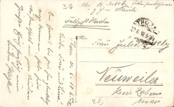 Zustand, siehe Scan, gelaufen, 1918 - ca 14 cm X 9 cm
