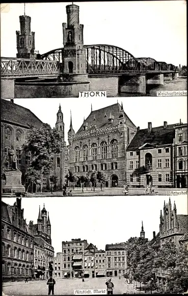 Ak Toruń Thorn Westpreußen, Weichselbrücke, Artushof, altstädtischer Markt