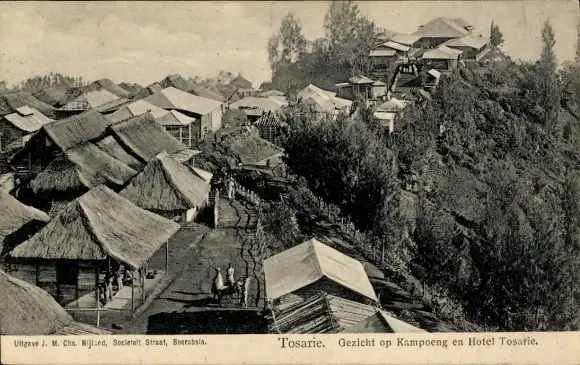Ak Tosari Java Indonesië, Gezicht op Kampoeng en Hotel Tosarie
