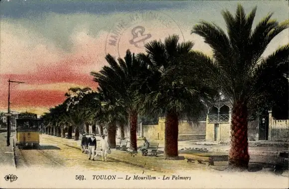Ak Toulon Var, Mourillon, Straßenbahn, Palmiers