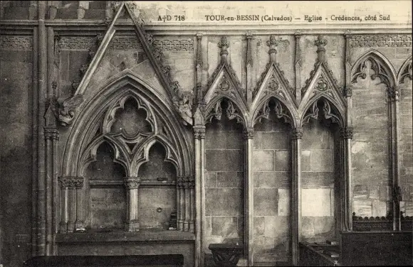 Ak Tour en Bessin Calvados, Eglise, Credences
