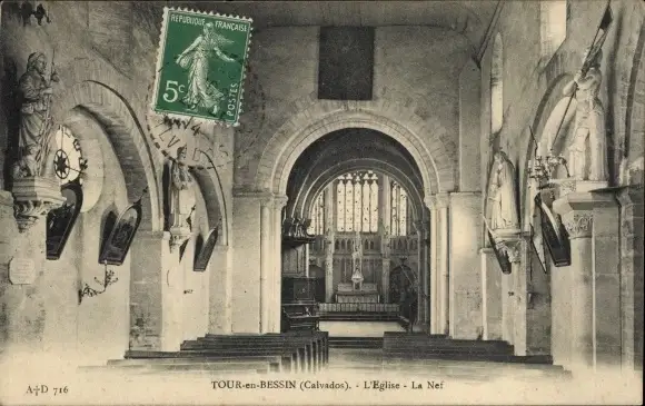 Ak Tour en Bessin Calvados, L'Eglise, La Nef