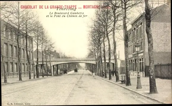 Ak Tourcoing Nord, Le Boulevard Gambetta et le Pont du Chemin de fer