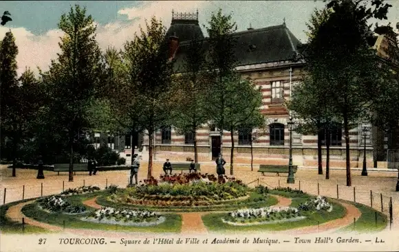 Ak Tourcoing Nord, Le Square de l'Hotel-de-Ville, Academie de Musique