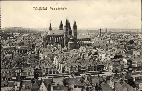 Ak Tournai Wallonien Hennegau, Vue generale, Kirche